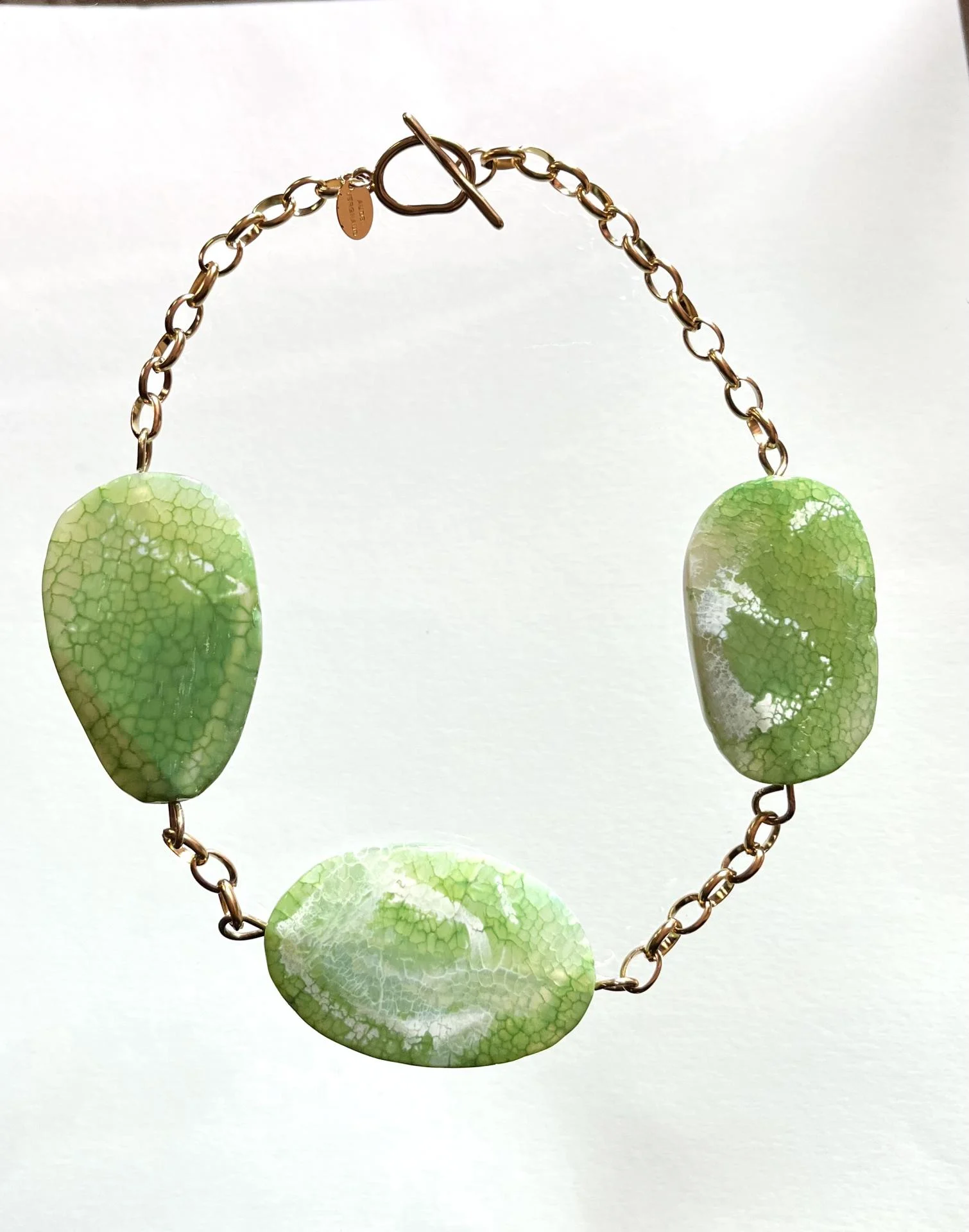 Matière : agate verte, acier inoxydable doré.