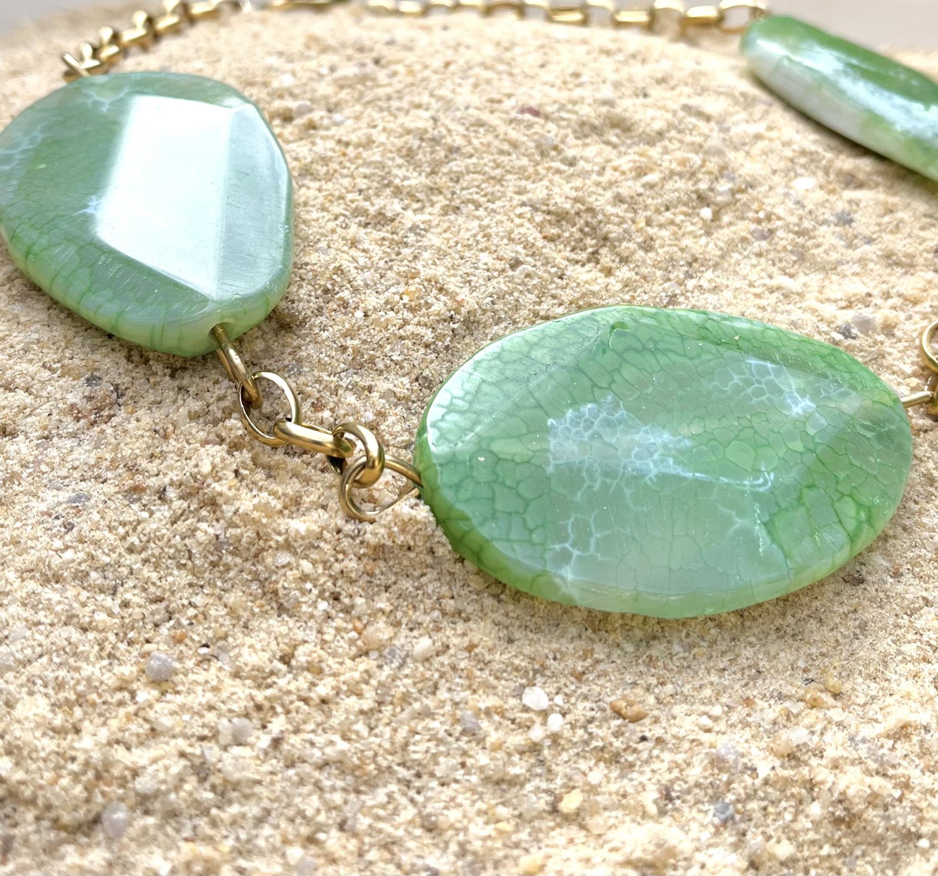 Collier en agate verte, bohème et élégant, idéal poue un look quotidien ou une occasion spéciale.