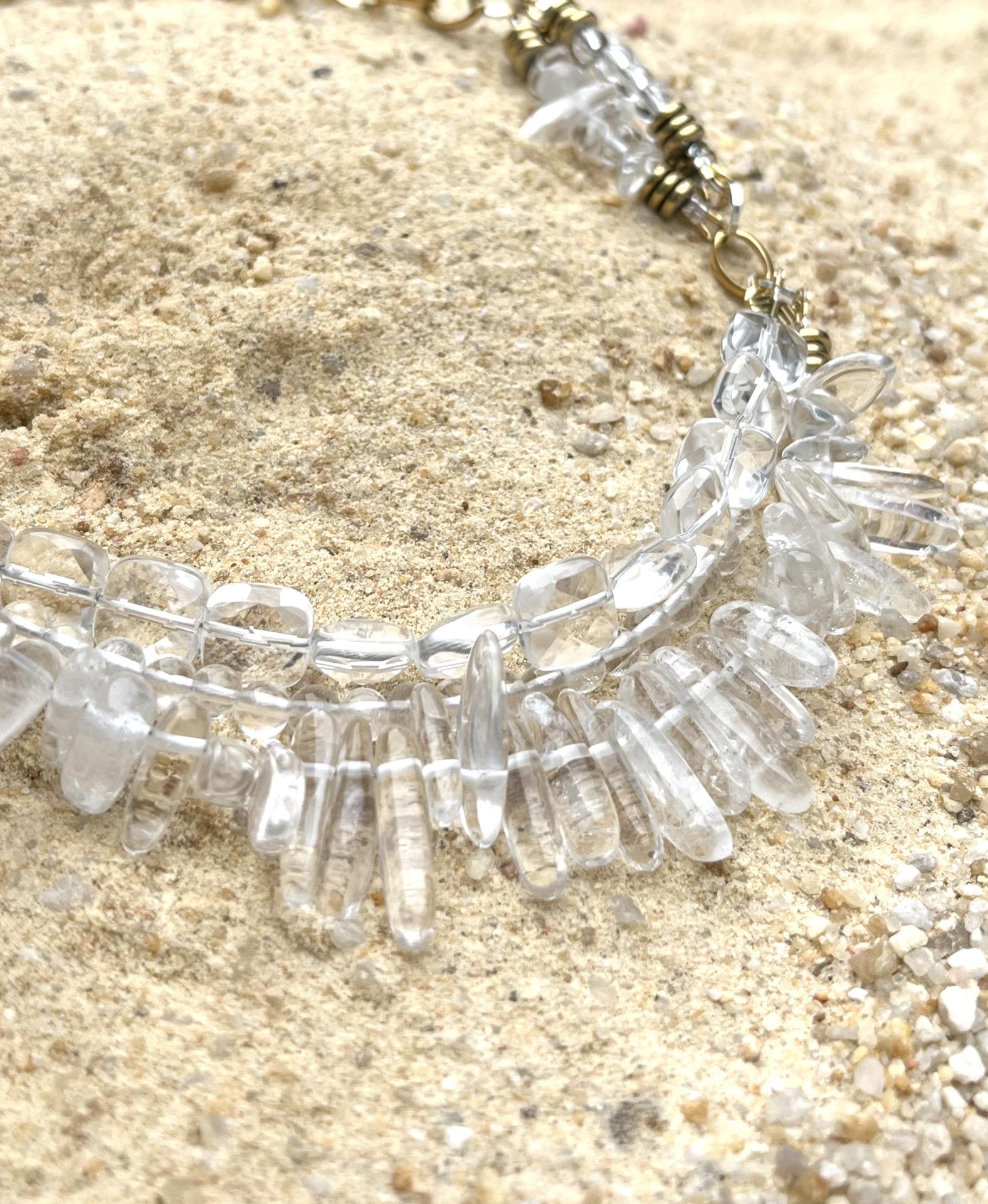 Illuminez vos tenues avec ce collier en cristal de roche, symbole de pureté et d'energie positive.