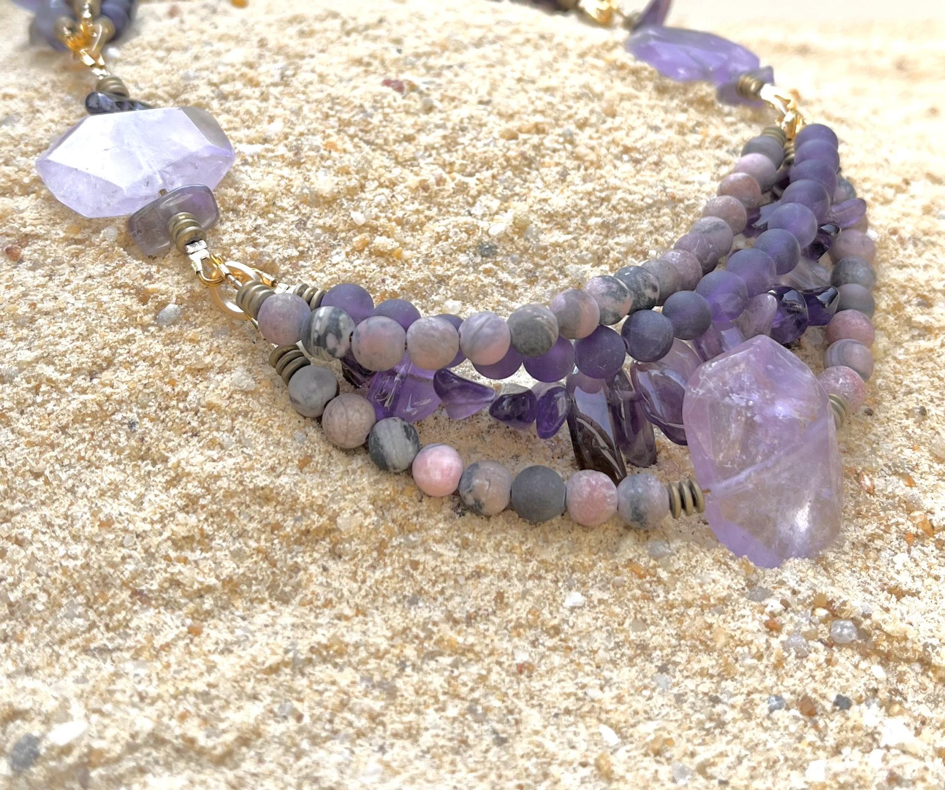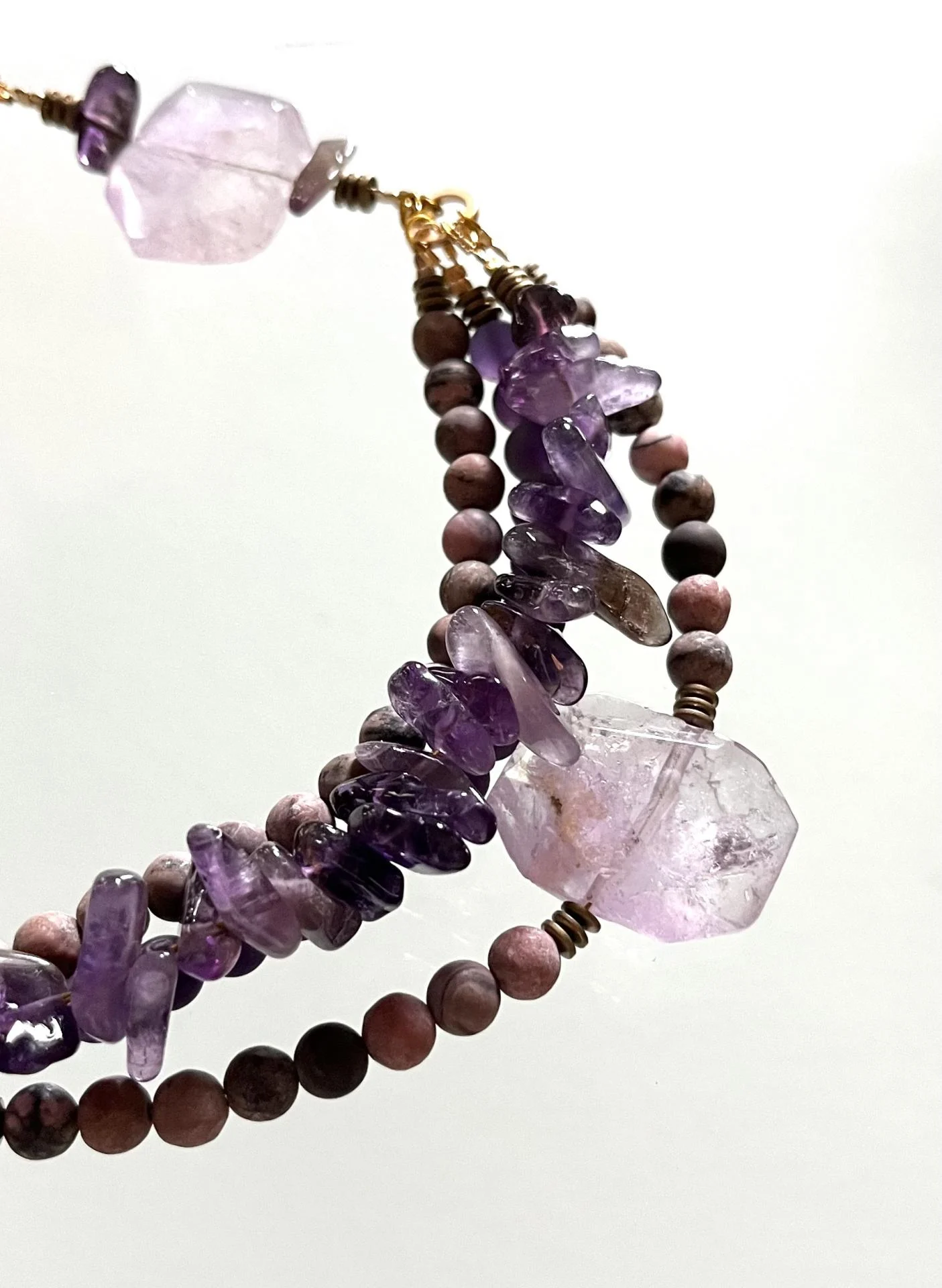 Collier délicat en améthyste naturelle, une pièce qui allie éclat minéral et raffinement intemporel.