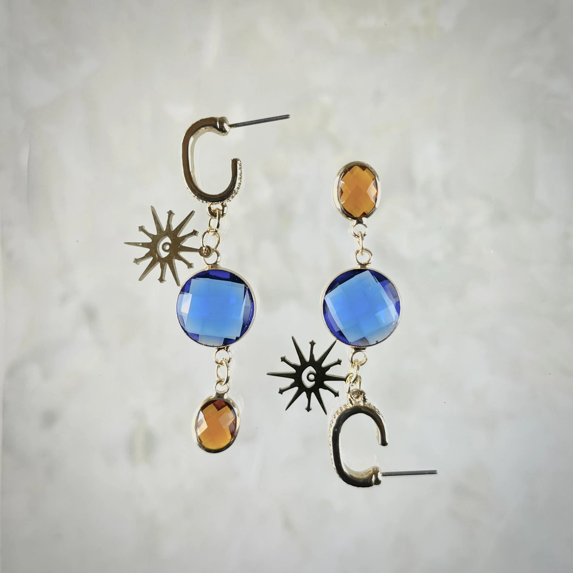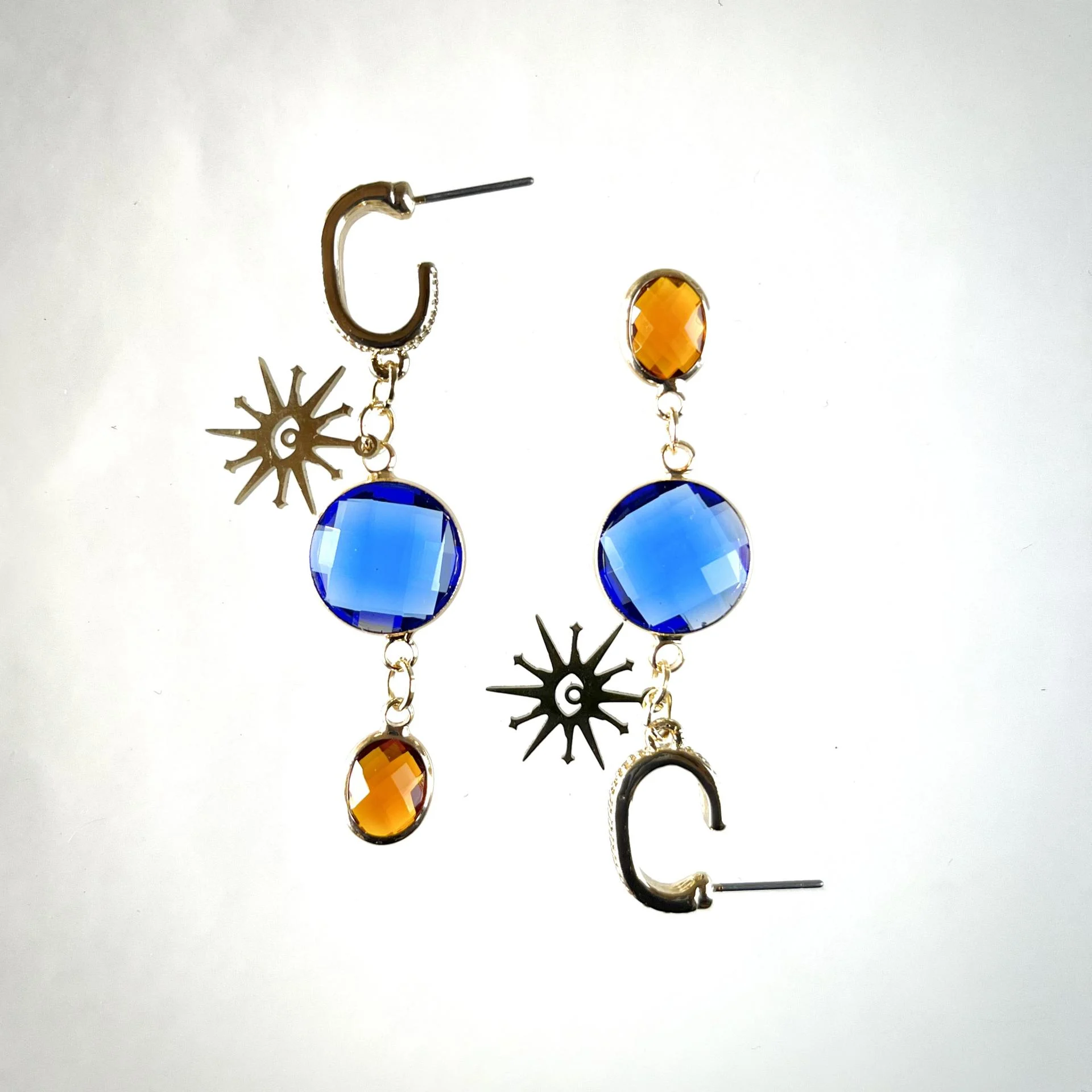 Délicates et lumineuses, ces boucles d'oreilles associent l'éclat du cristal à la chaleur du laiton doré. Leur touche de couleur capte la lumière avec subtilité, apportant une élégance naturelle à chaque mouvement.