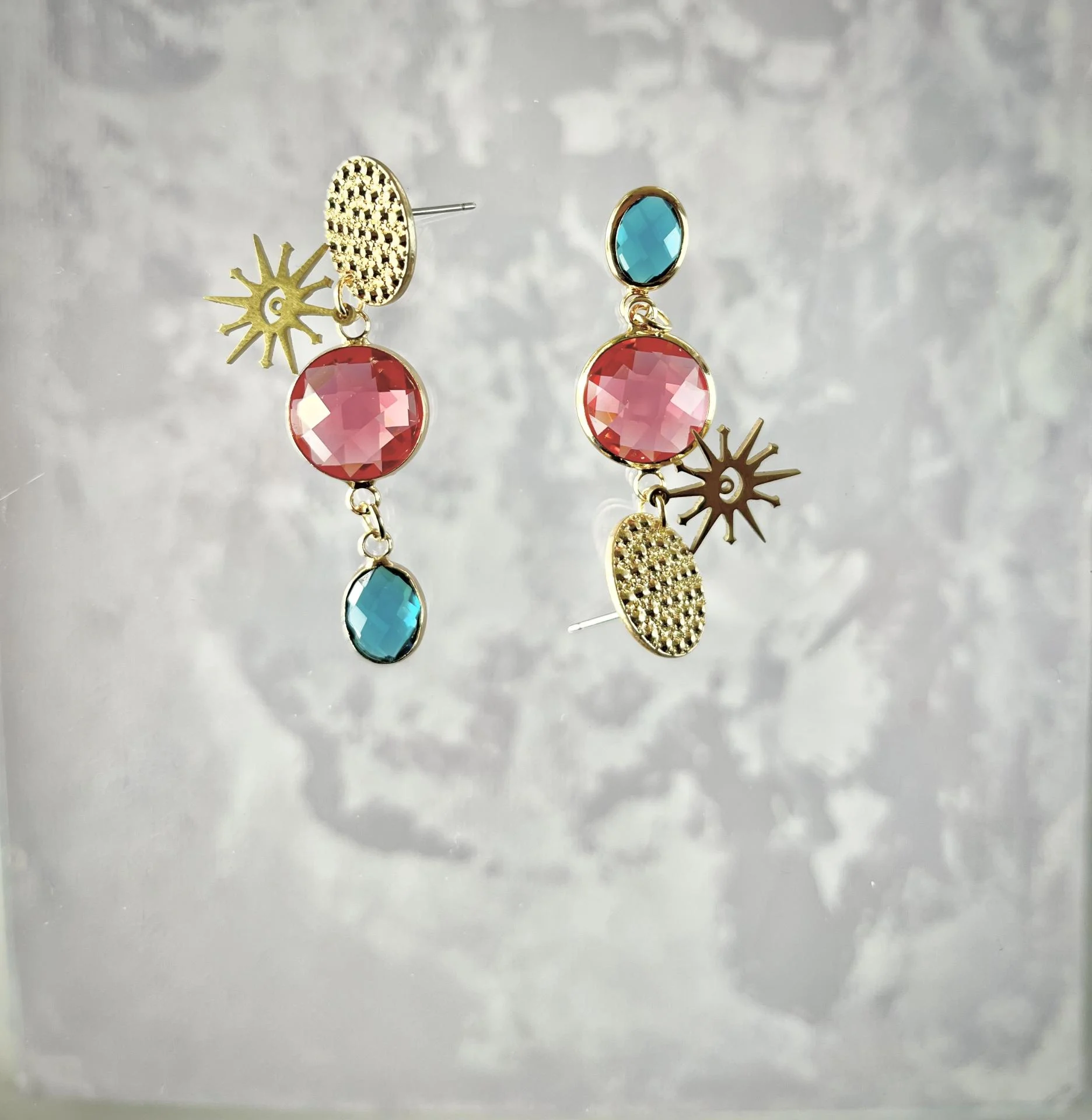 Boucles d'oreilles en cristal et laiton doré