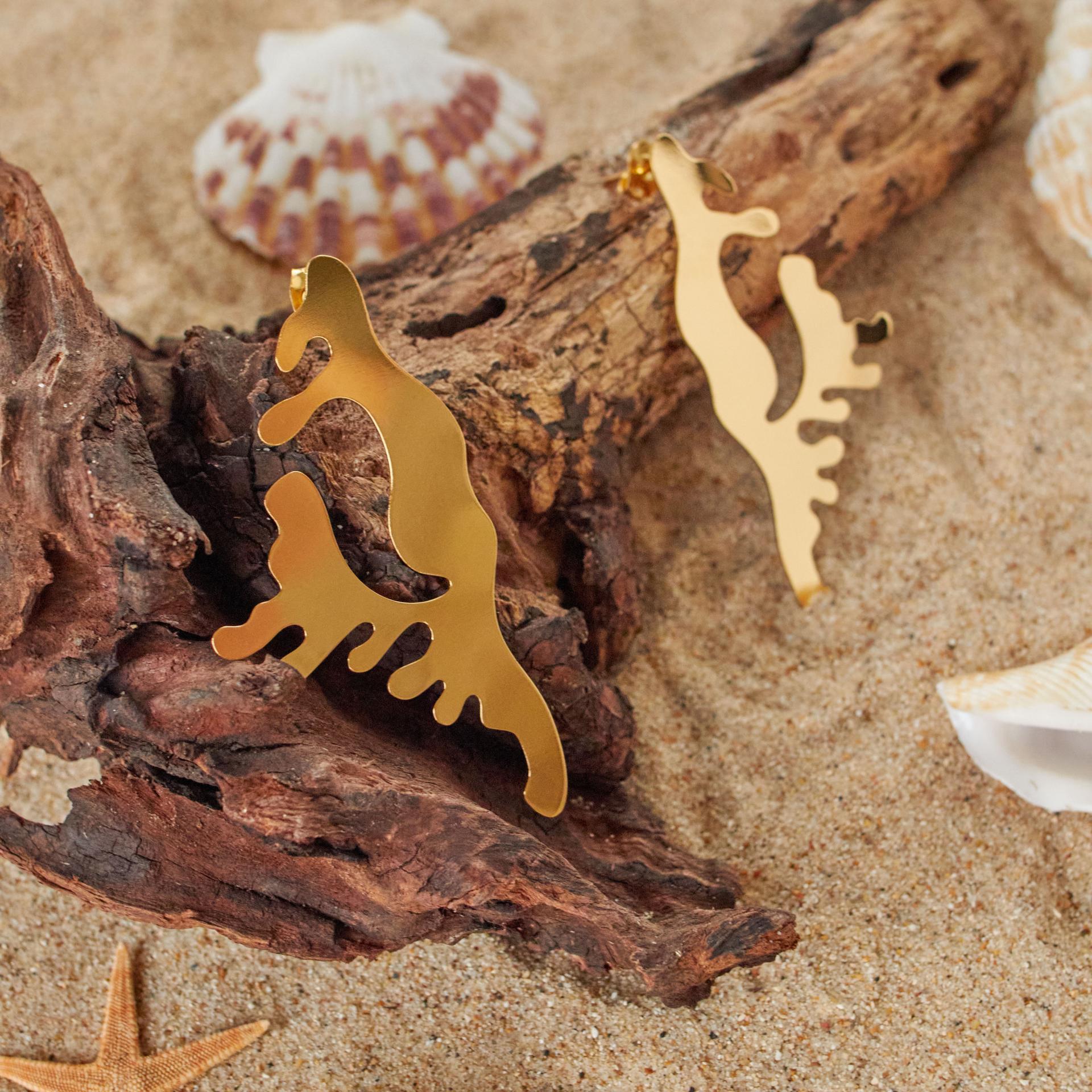 Comme l'écume effleurant la mer sous un ciel infini, ces boucles d'oreilles dessinent des courbes légères et évanescentes. Inspirées par la vue magique d'un vol en autogire, elles capturent la danse fluide des vagues, suspendues entre ciel et mer. Chaque détail, sculpté dans le laiton doré à l'or fin, évoque la poésie du mouvement et de l'éphémère.