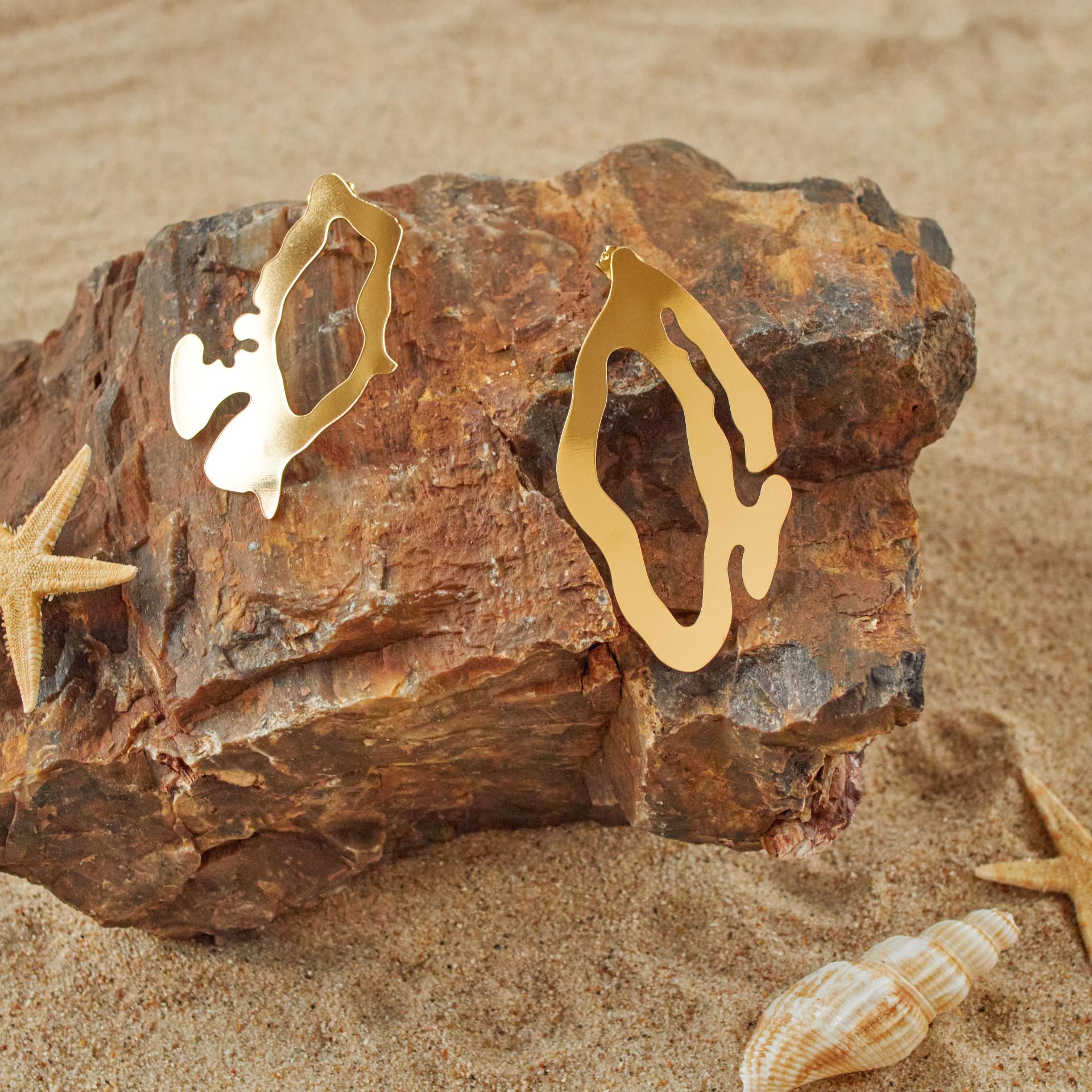 Inspirées par les formes sculptées par la mer à marée basse, ces boucles d'oreilles sont chacune unique. Avec des dimensions et des courbes légèrement différentes, elles créent un contraste délicat, comme les paysages découverts sous un ciel infini lors d'un vol en autogire. Les jeux de lumière et de reflets sur les rivages se retrouvent dans chaque pièce, symbolisant l'harmonie entre la terre, la mer et le ciel.