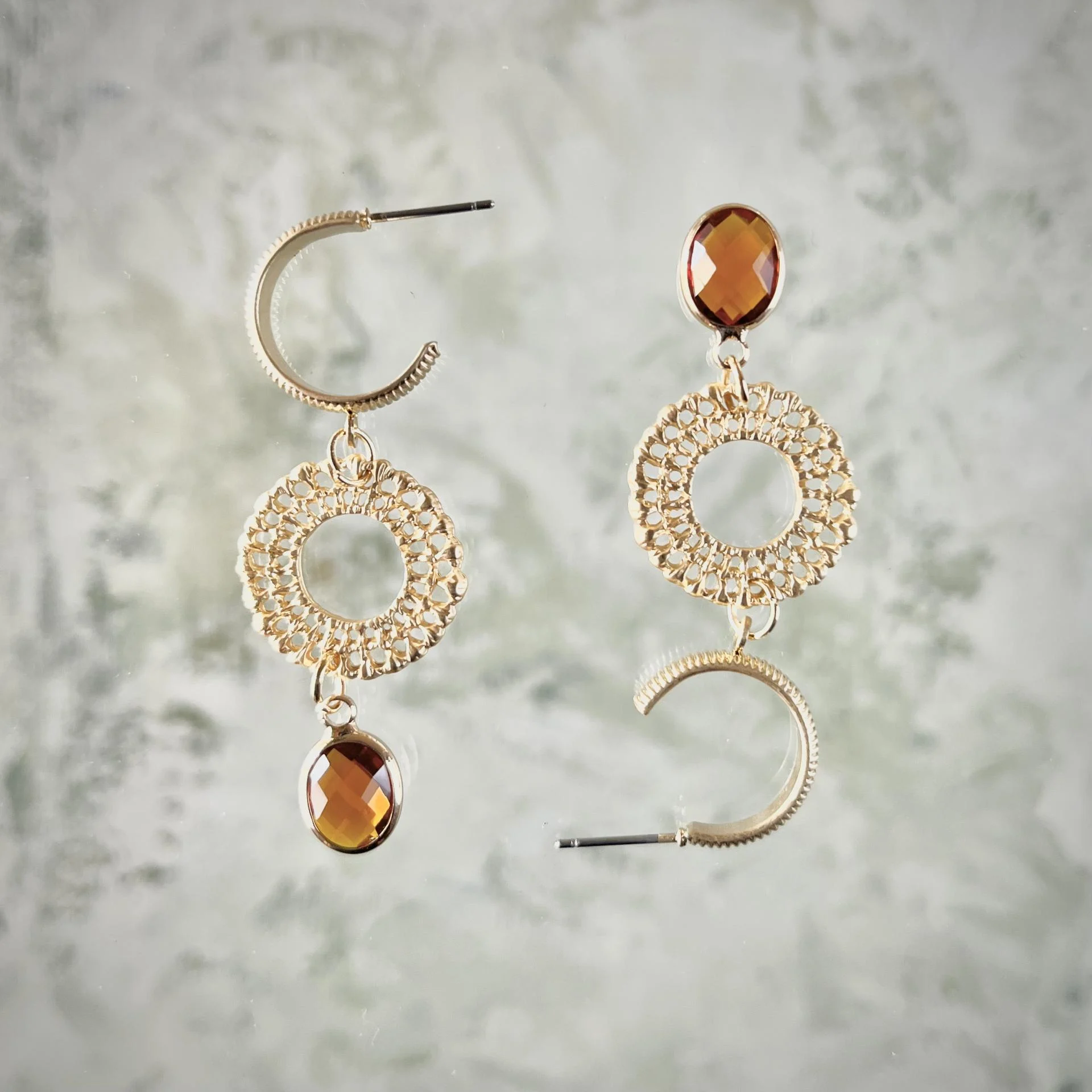 Boucles d'oreilles en cristal et laiton doré