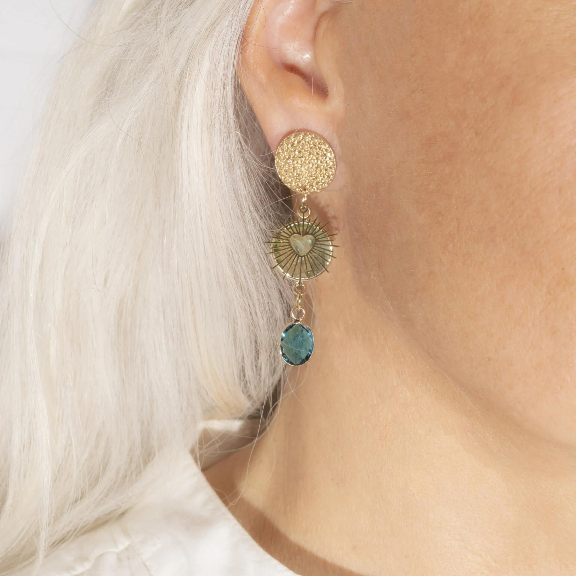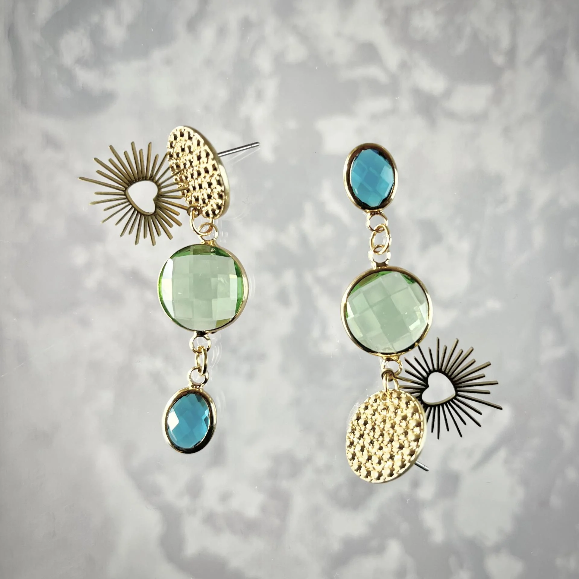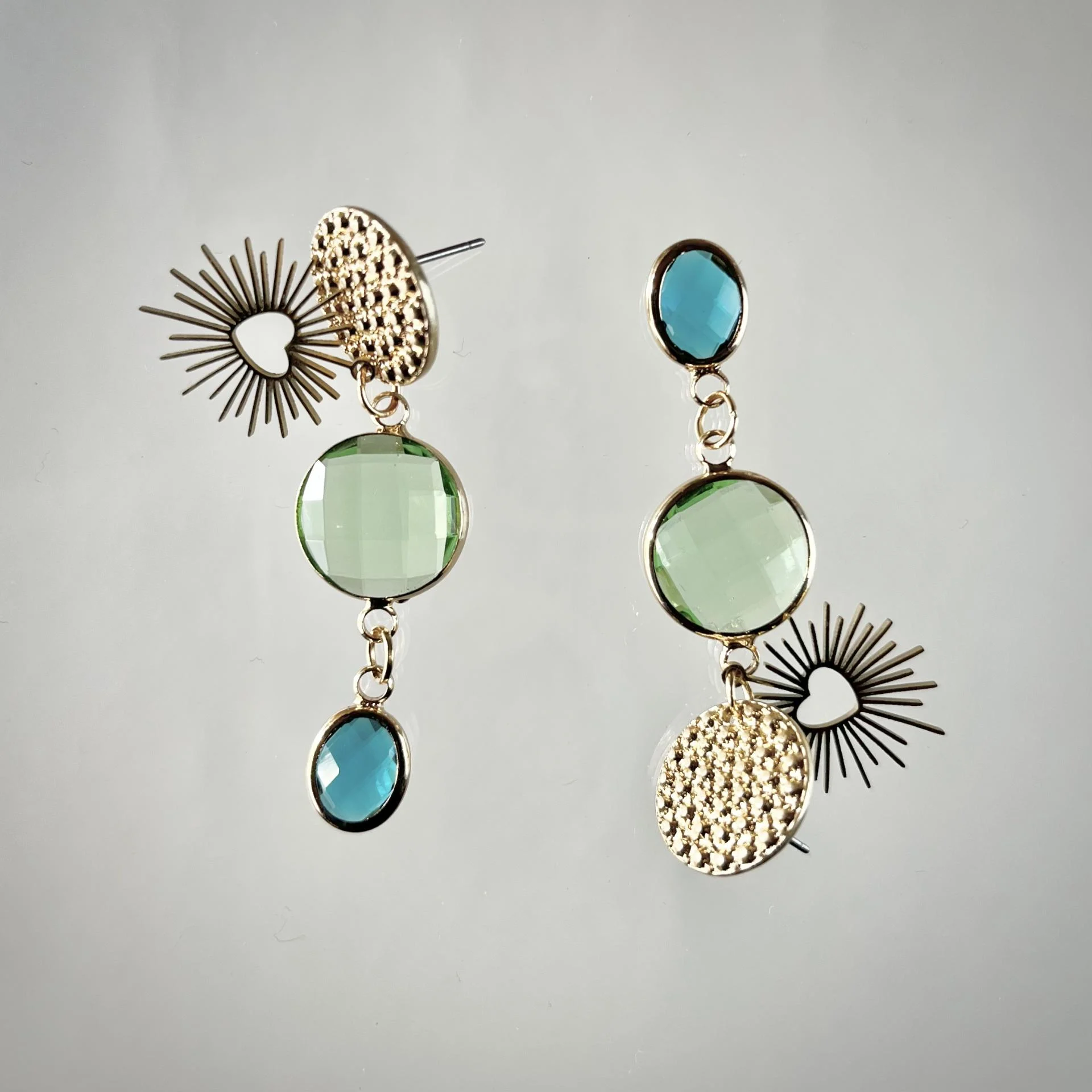 Délicates et lumineuses, ces boucles d'oreilles associent l'éclat du cristal à la chaleur du laiton doré. Leur touche de couleur capte la lumière avec subtilité, apportant une élégance naturelle à chaque mouvement.