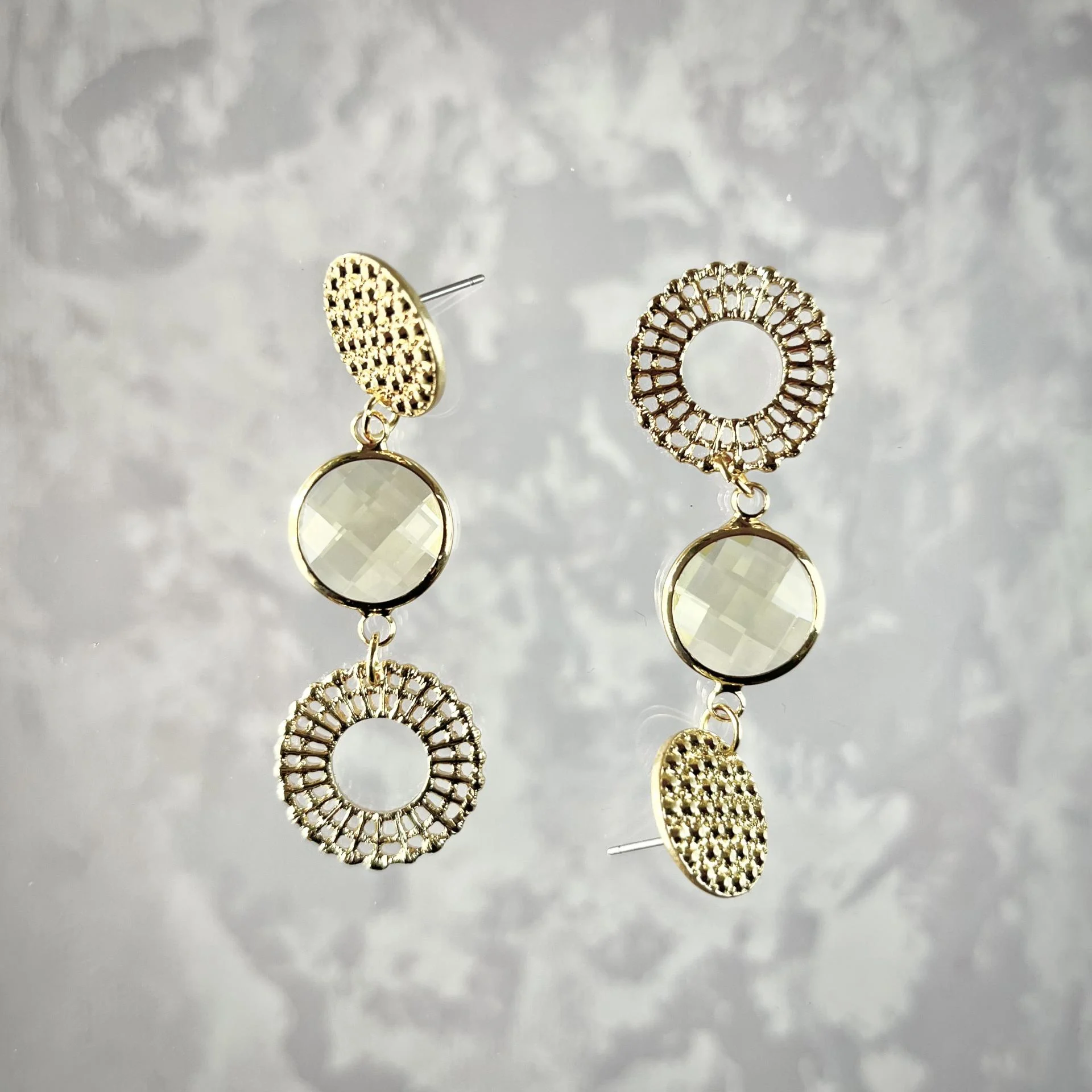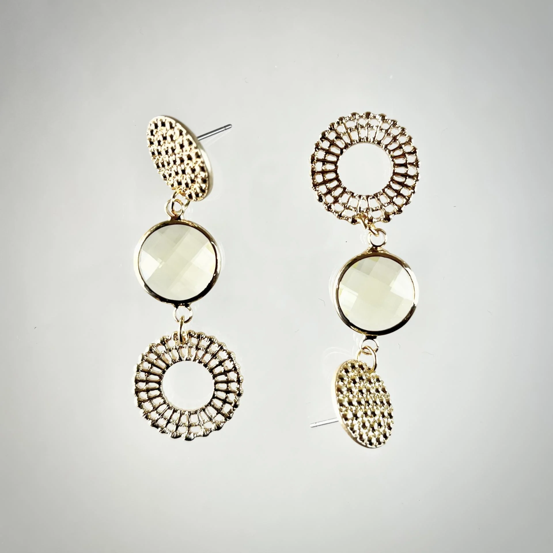 Délicates et lumineuses, ces boucles d'oreilles associent l'éclat du cristal à la chaleur du laiton doré. Leur touche de couleur capte la lumière avec subtilité, apportant une élégance naturelle à chaque mouvement.